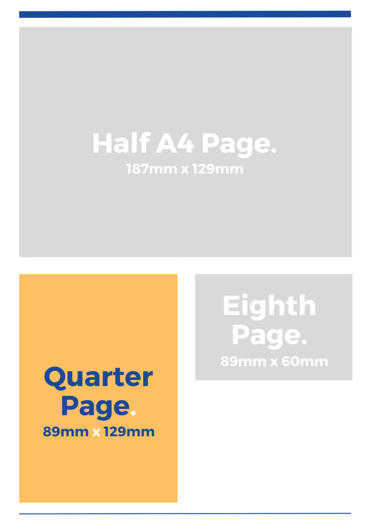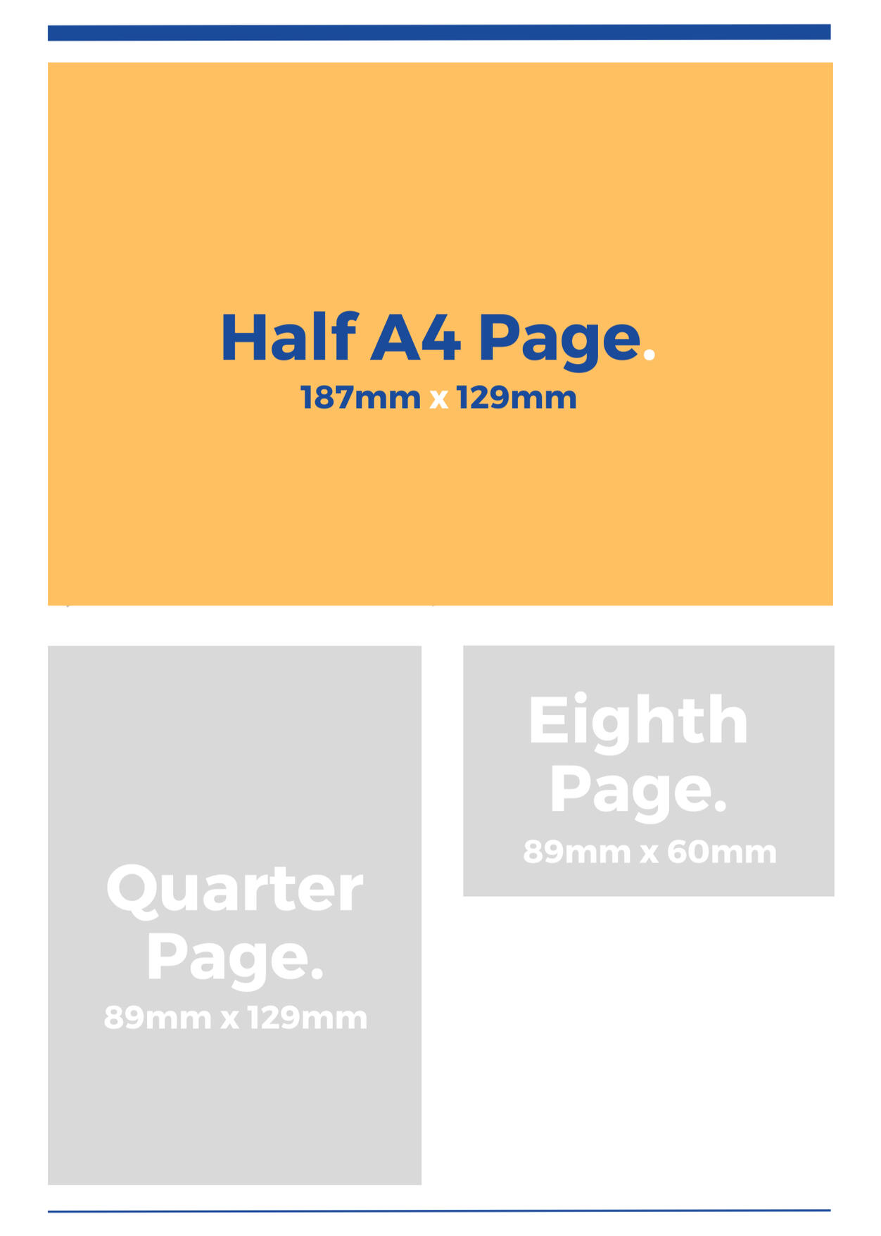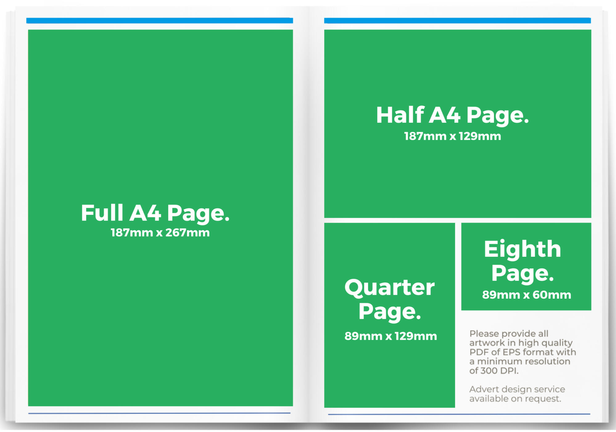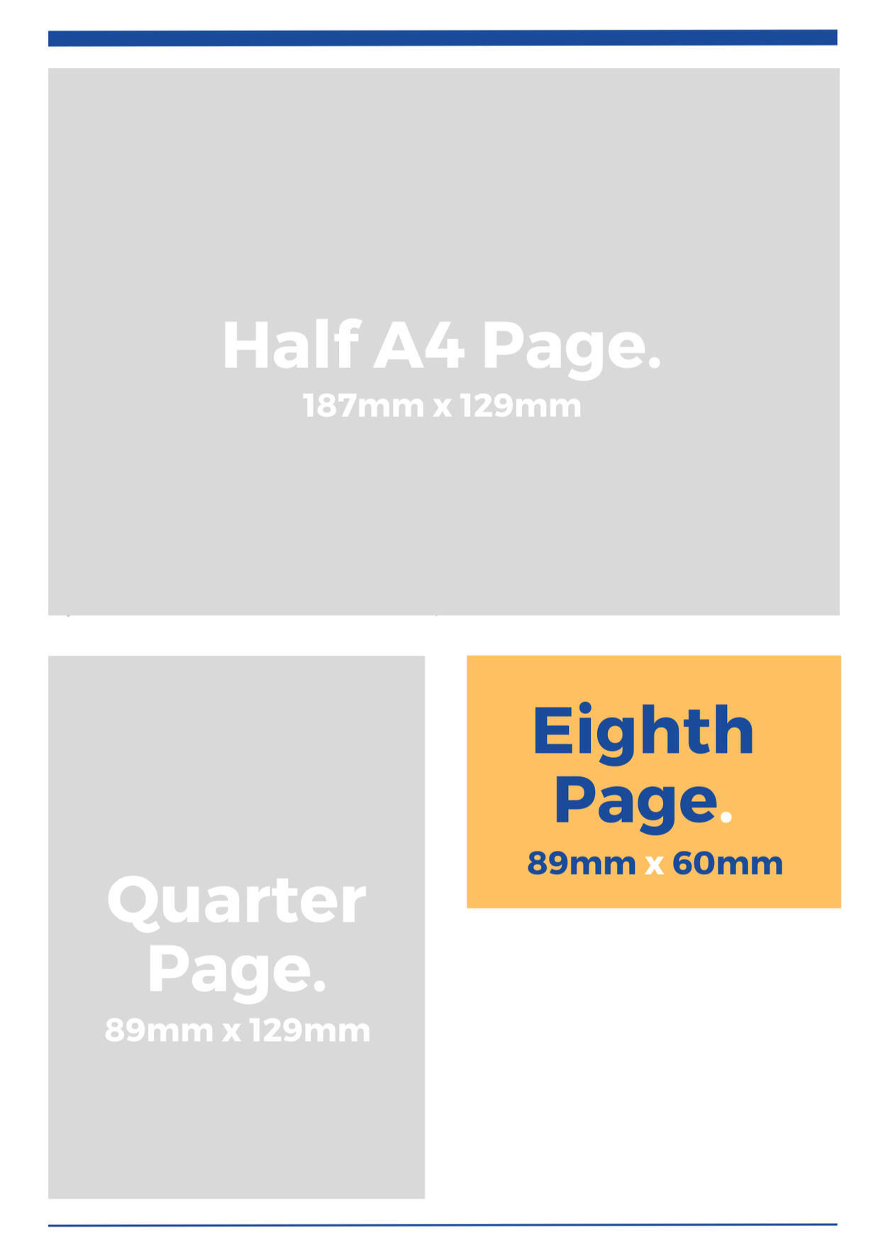 Trust Local is printed on A3 paper, folded in half to produce an A4 size folded publication (same size as a magazine). Printed in full colour, with front page, back page and two central pages where your advert can appear and three possible advert sizes.