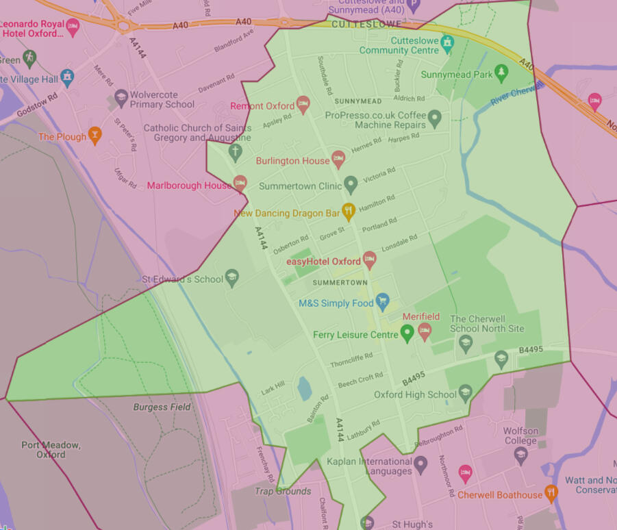 Our Summertown and Jericho publication is delivered to a total of 8,430 homes and businesses every two months (4,315 in half of the area one month and a different 4,115 homes and businesses the next month). The distribution covers affluent areas of Walton Manor, Summertown, Waterways, Waterside, North Oxford including streets like Charlbury Road, Norham Gardens and Park Road up to the ring road as per the map below: